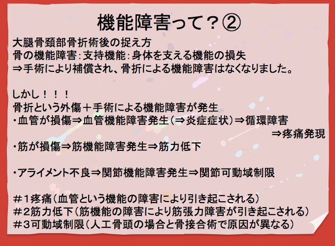 それは、骨折によって①支持機能が障害されましたが、手術により支持機能が回復しました。